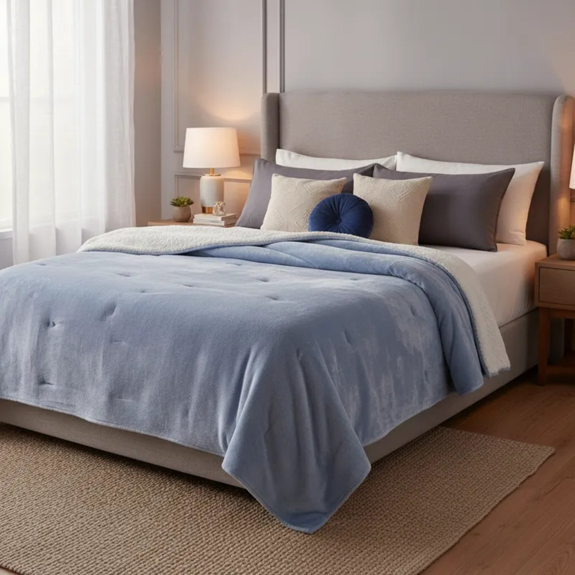 Su diseño en colores lisos aporta un estilo moderno y versátil que se adapta fácilmente a cualquier decoración. La textura suave y brillosa no solo luce sofisticada, sino que también proporciona una sensación cálida y agradable al tacto, perfecta para el uso diario.
