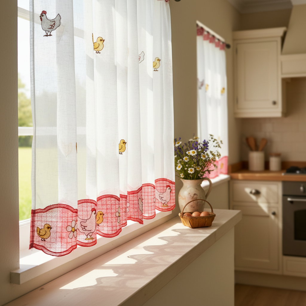 Cortina Para Cocina Bordada Pollitos