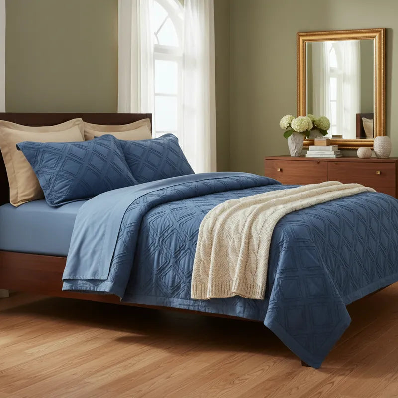 Cada edredón incluye un juego completo de sábanas y fundas para almohadas a juego, creando un ambiente coordinado, limpio y muy elegante.