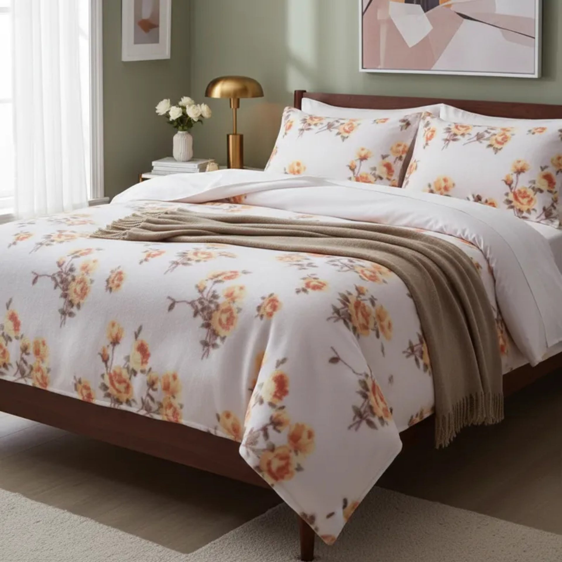 Sábanas Polar Extra Calientita Floral Amarilla