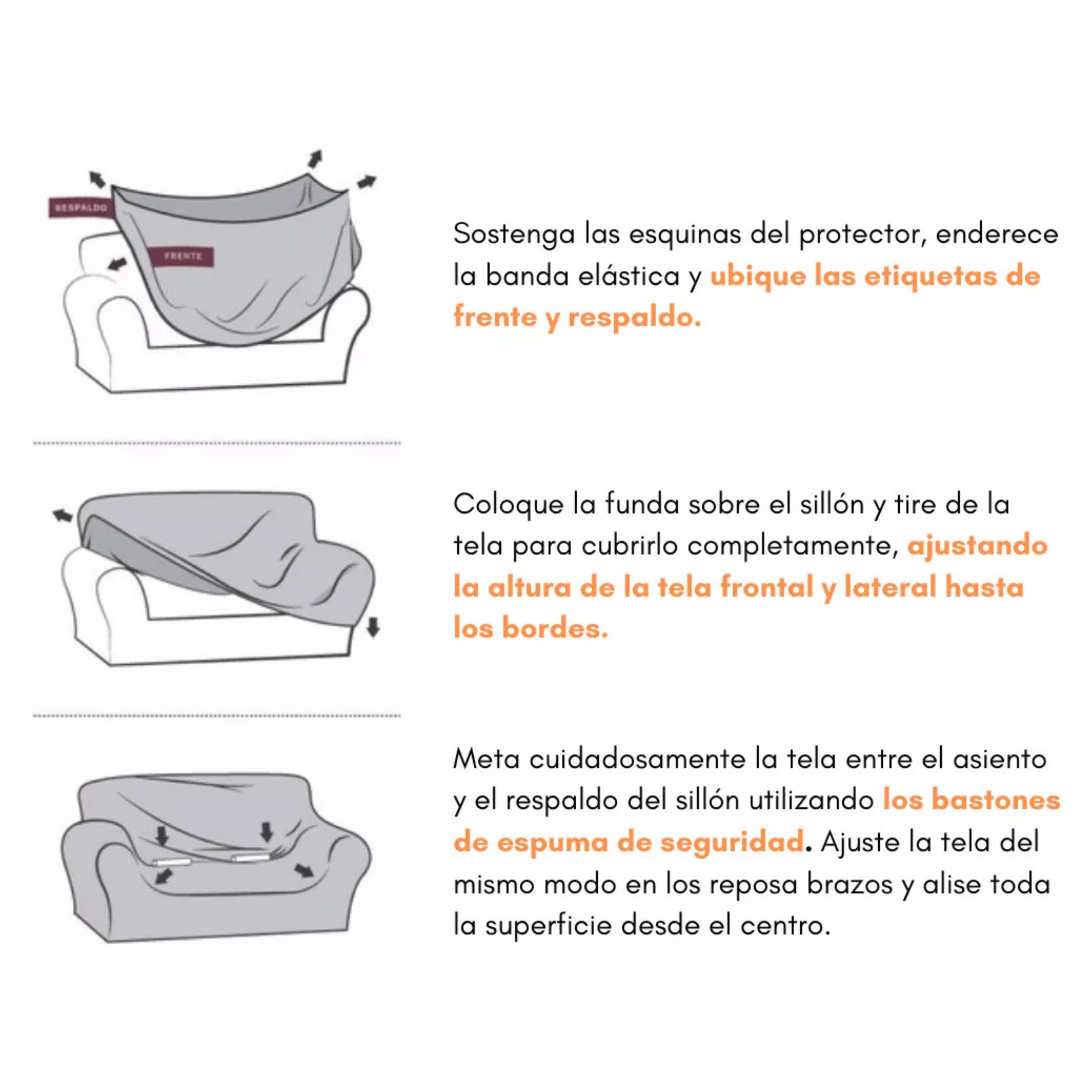 - Los bastones de espuma antideslizantes permiten que las fundas para sofá permanezcan en su lugar y no tengan arrugas.